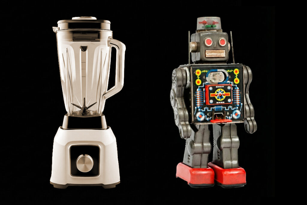 Yo, cuando pienso en robots, pienso desde una licuadora hasta esta imagen de humanoides con partes metálicas de la ciencia ficción muy predominante en la cultura popular. Pero claro, todos estos otros robotsitos que nos rodean. Las licuadoras, la cafetera, el refrigerador… Y todos los puntos intermedios amplían la idea de lo que podría ser la “desobediencia robótica”.