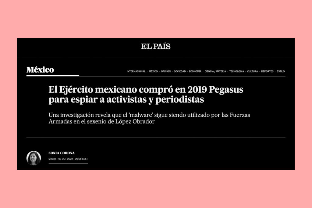 Por eso no me parece que la idea de los medios tácticos sea tan productiva en este contexto. En mi tema de investigación, estoy muy consciente de que en México las cosas no son tan sencillas. México fue el primer país en adquirir el malware Pegasus de la compañía israelí NSO Group. El primer comprador a nivel mundial. ¡El gobierno de México! Estamos hablando de una disparidad con la que no podríamos conversar de la misma manera sobre un medio táctico tanto en México como fuera de él. Estamos hablando de una de las primeras armas cibernéticas [Pegasus] utilizadas contra civiles, que genera una red de espionaje de absolutamente toda tu actividad en línea.